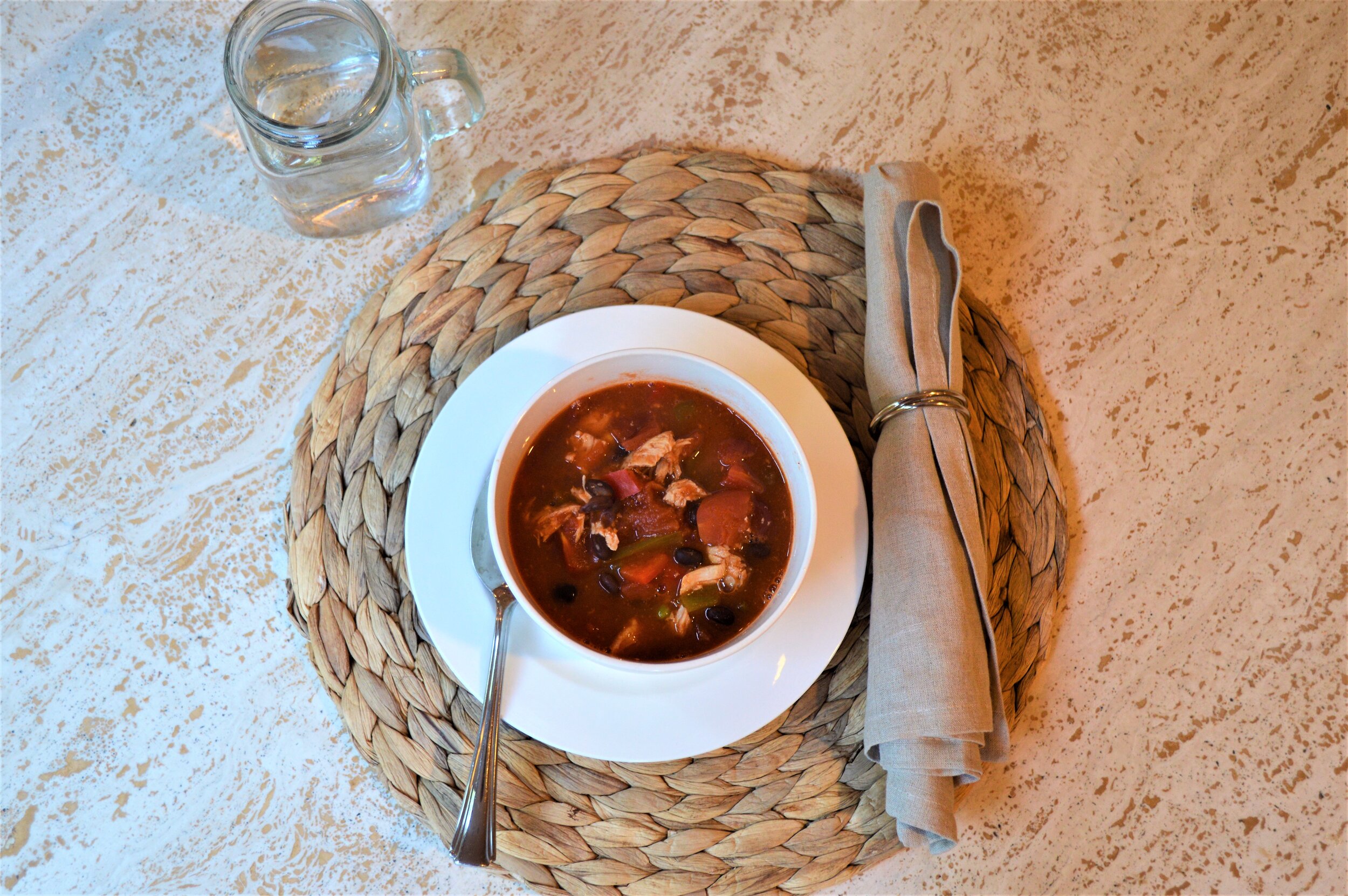 Add corn, chicken broth or water, chili powder, cumin, black pepper and tomato paste. Bring to a boil; reduce to simmer and cook 10 – 15 minutes until fragrant. Serve with optional toppings, if desired.